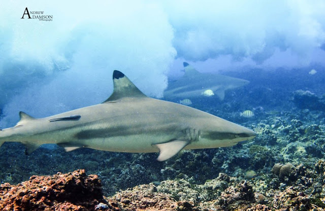 Black tip reef sharks – amazing & harmless sharks in the waves. |
