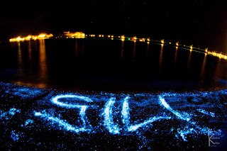 As a matter of a fact, sea does sparkle indeed ! Recently, at night, our guests have been noticing glowing dots where the waves break on the beach. On some nights hundreds of these small planktonic creatures, each no bigger than a grain of sand, illuminate in electric blue as they are physically disturbed by the breaking wave. The organism causing this glow is Cypridina ostracod, (a planktonic creature). This glow, is called bioluminescence, and Cypridina glows when it is disturbed.