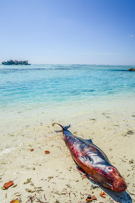 Last week, we made a sad discovery. A dead dwarf sperm whale (Kogia sima) 2,2 meters in length, was stranded on the eastern beach of Lankanfushi.